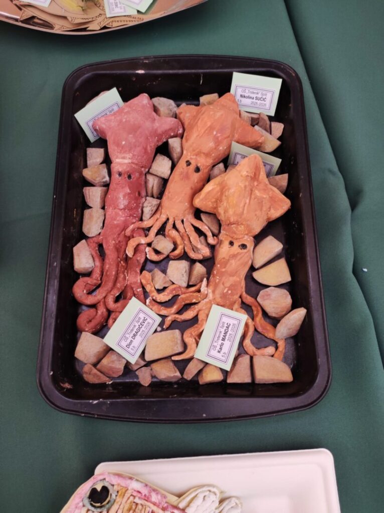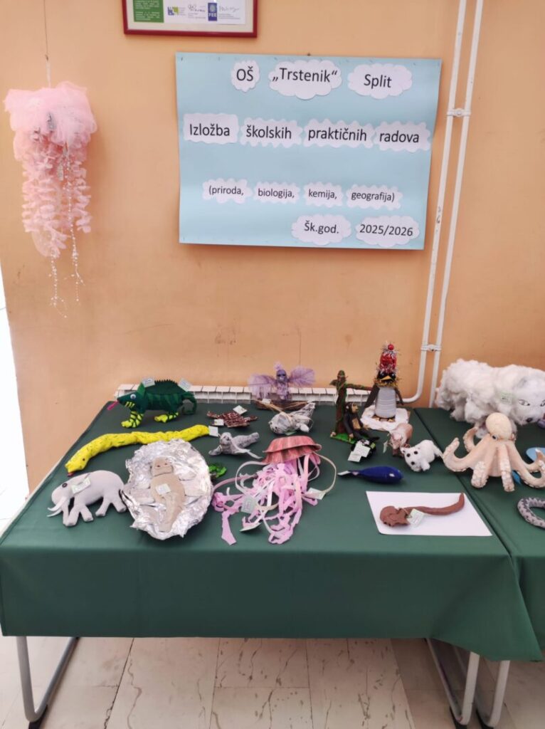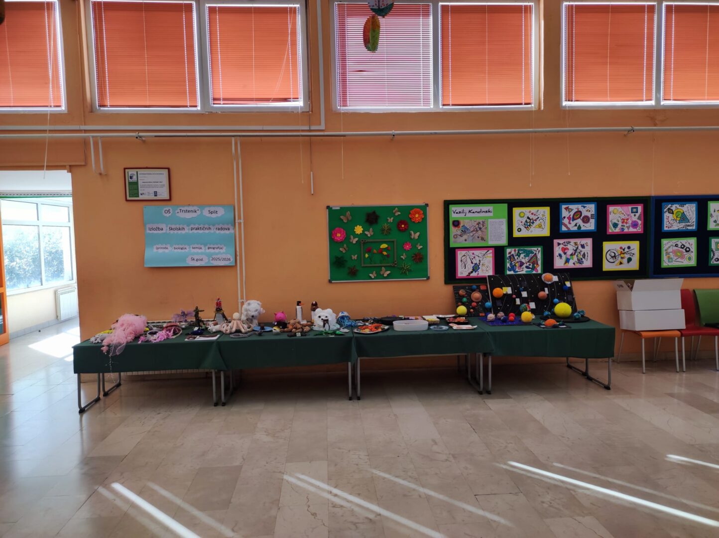 U atriju škole 9.4.2026. godine postavljena je izložba radova učenika predmetne nastave iz prirode, biologije, kemije i geografije. Upute za izradu radova učenici su dobili od predmetnih nastavnica Renate Duran i Nade Ugrine, a sve ostalo rezultat je njihove maštovitosti i kreativnosti.