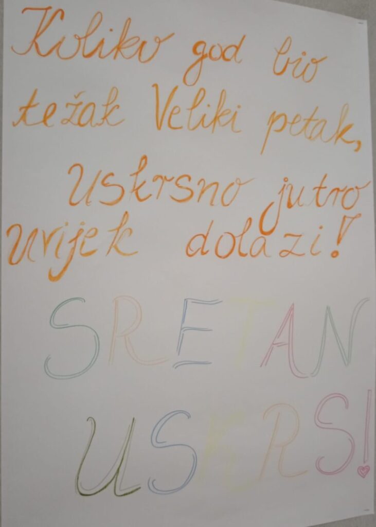 Korizmeno vrijeme obilježili smo i kroz kreativno izražavanje – izradom prigodnih materijala te oslikavanjem prizora Isusovih posljednjih dana. Na taj smo način produbili razumijevanje ovog vremena tišine i pokore te se duhovno pripremili za nadolazeći blagdan.
