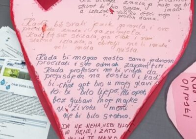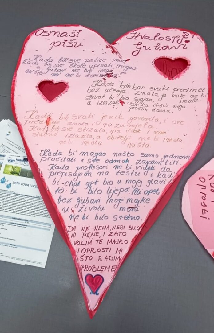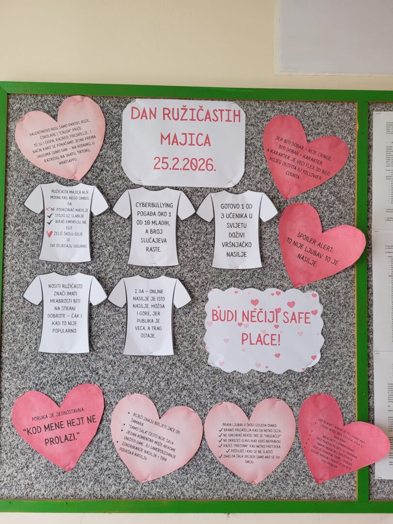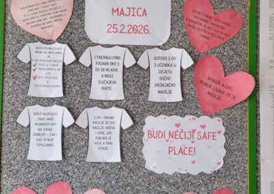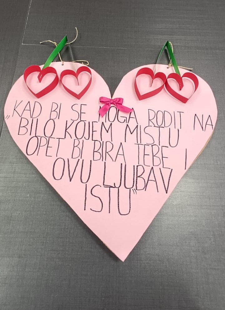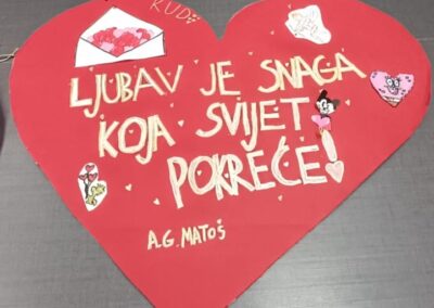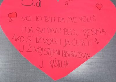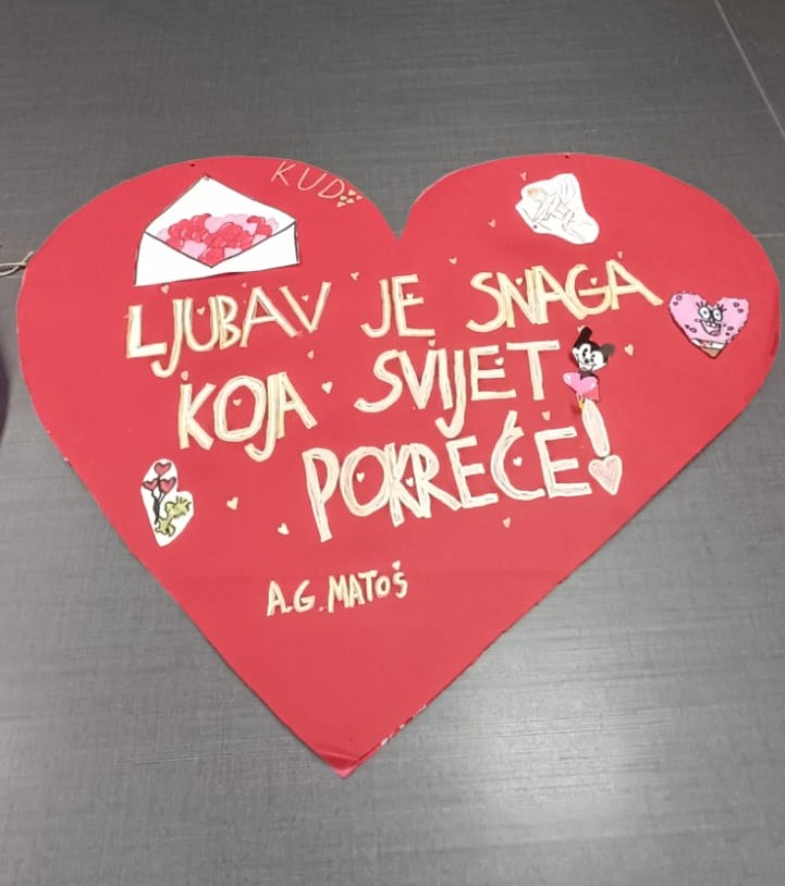 Veljača, jedini ženski mjesec u godini, donijela je puno nježnosti u našu školu. Ne želeći da ljubavi, toj božanskoj pokretačkoj sili, posvetimo samo jedan dan, odlučili smo proširiti njene plodove tijekom cijelog ovog mjeseca. Srca, ružičasta i crvena, ispisana romantičnim, prijateljskim i toplim porukama krasila su atrij naše škole. Svi razredi su sudjelovali te smo ih zajedničkim snagama osovili na užad kako bismo iznad naših glava dobili ružičasto nebo puno ljubavi. Na samo Valentinovo ta lebdeća srca bila su scenografija za recitiranje i pjevanje najpoznatijih ljubavnih pjesama. A ružičaste su bile i majice kojima smo obilježili Dan borbe protiv vršnjačkog nasilja. Naša psihologinja Vesna tim je povodom održala petašima i njihovim roditeljima prezentaciju o nenasilnom rješavanju sukoba. Djeca su i tu, kao i uvijek, imala kreativne ideje kako sukob pretvoriti u suradnju. Tim aktivnostima pridružili su se i naši najmlađi, prvaši, zajedno sa svojom učiteljicom Natašom. Veselo je bilo i na pokladni utorak, pogotovo u malim razredima gdje su se, osim kostimiranih učenika, od kraja dale i njihove učiteljice. Pun mjesec događanja u školi, a sve to možete vidjeti i u maloj galeriji slika ispod teksta. Na kraju, završavam s filmskom mišlju da love, actually, is all around. Samo treba otvoriti malo oči, naćuliti uši i pružiti ruku na dar.