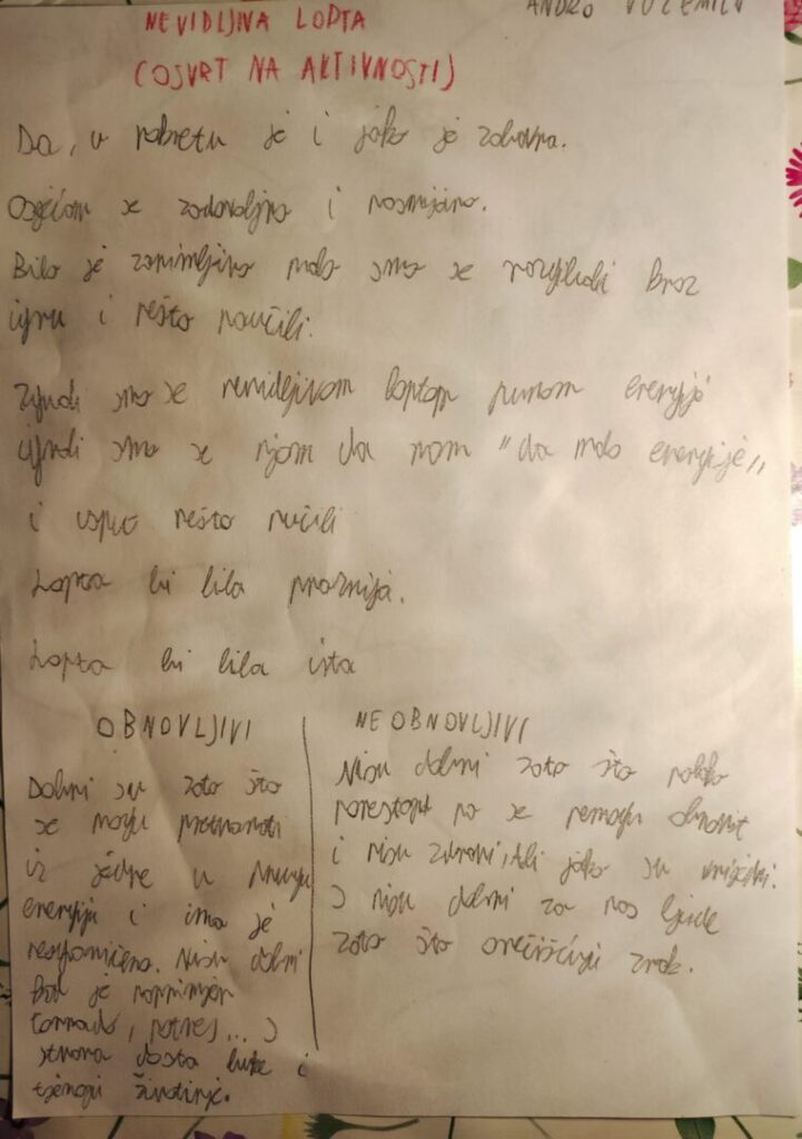 Cilj aktivnosti: Upoznati se s oblicima i izvorima energije te važnosti energije u svakodnevnom životu