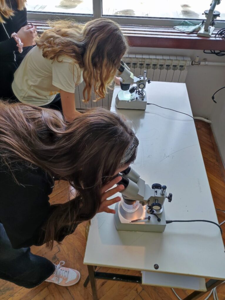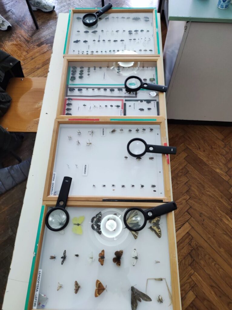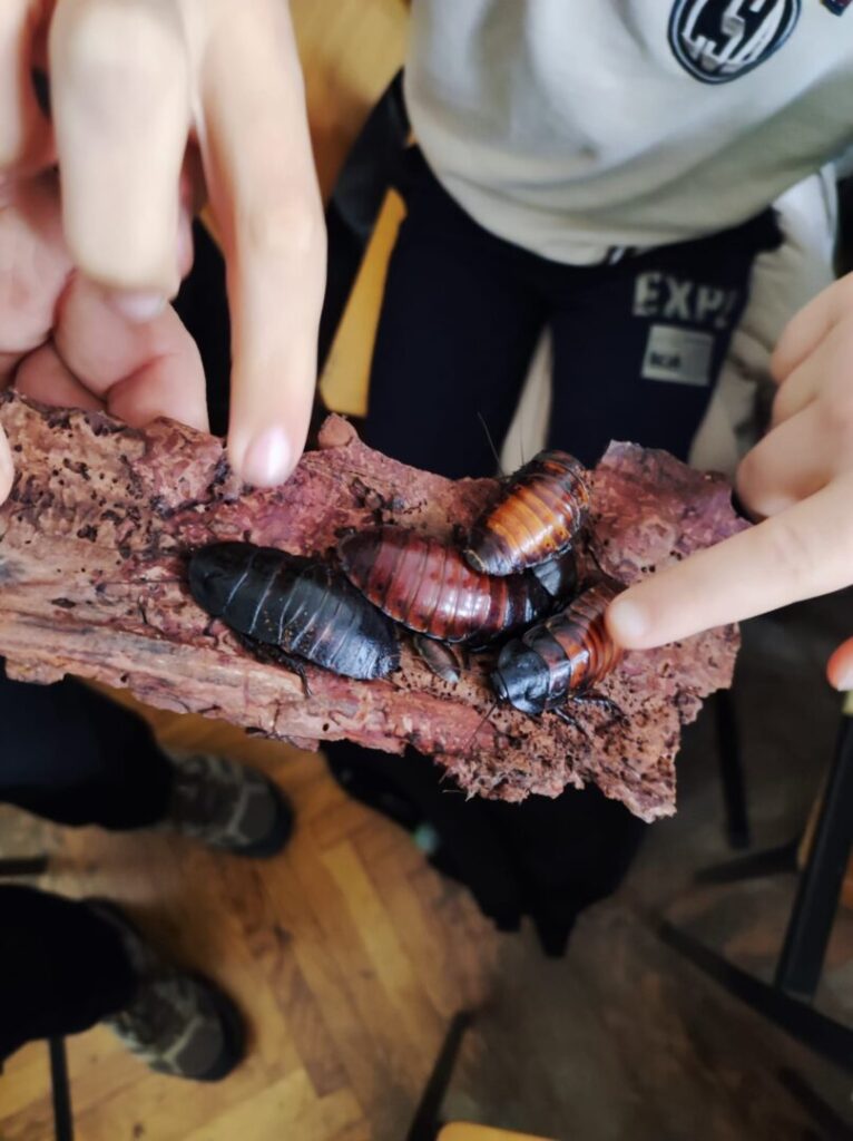 Učenici su proučavali muzejske zbirke kukaca, mikroskopirali krila leptira i noge kukaca, a najviše su ih oduševili živi kukci, paličnjaci i madagaskarski siktajući žohari. Žive kukce su mogli dirati. Na kraju radionice su crtali kukce po izboru.