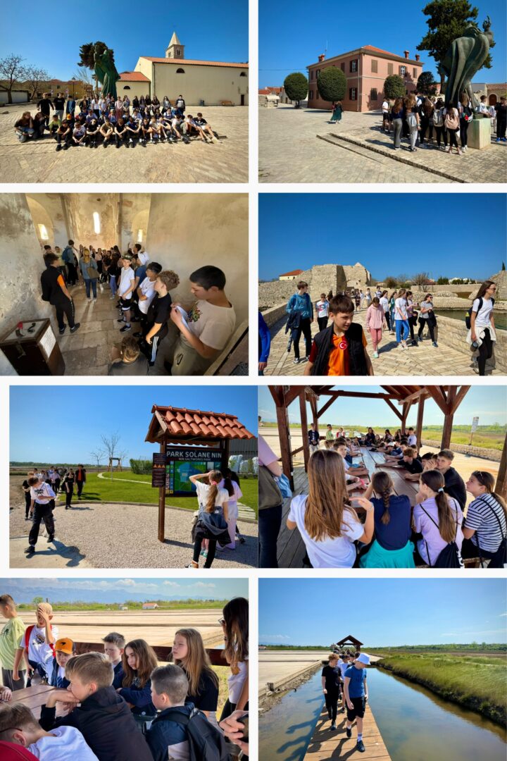 Učenici 6. razreda su ove školske godine bili su na jednodnevnom izletu u Ninu, Zadru i Vrsima. Dan je započeo šetnjom povijesnim gradom Ninom, prvim hrvatskim kraljevskim gradom. Učenici su imali priliku upoznati se s njegovom bogatom kulturnom baštinom, poput najmanje katedrale na svijetu i spomenicima s početka hrvatske povijesti. Posjetili su solanu u Ninu gdje su uz stručno vodstvo prošetali jedinstvenom poučnom stazom kroz polja soli i doznali način tradicionalne proizvodnje soli kao i zanimljivosti.