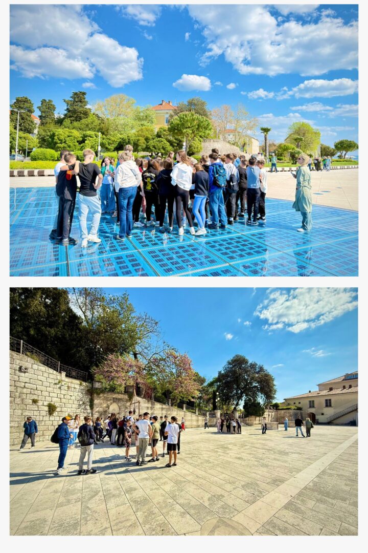 Nakon Nina uslijedio je posjet Zadru gdje su učenici, uz lokalnog vodiča, razgledali najvažnije znamenitosti grada te uživali u jedinstvenim instalacijama Morskim orguljama i Pozdravu Suncu.