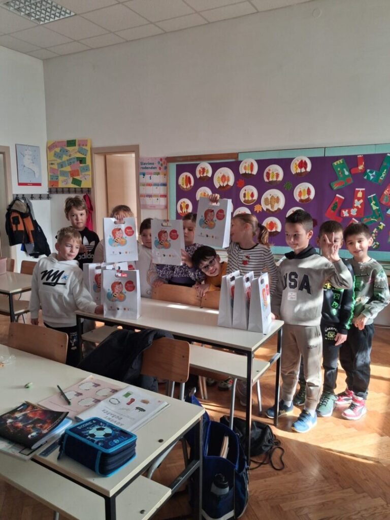 Učenicima smo podijelili prigodne poklone koje smo dobili od pčelara .