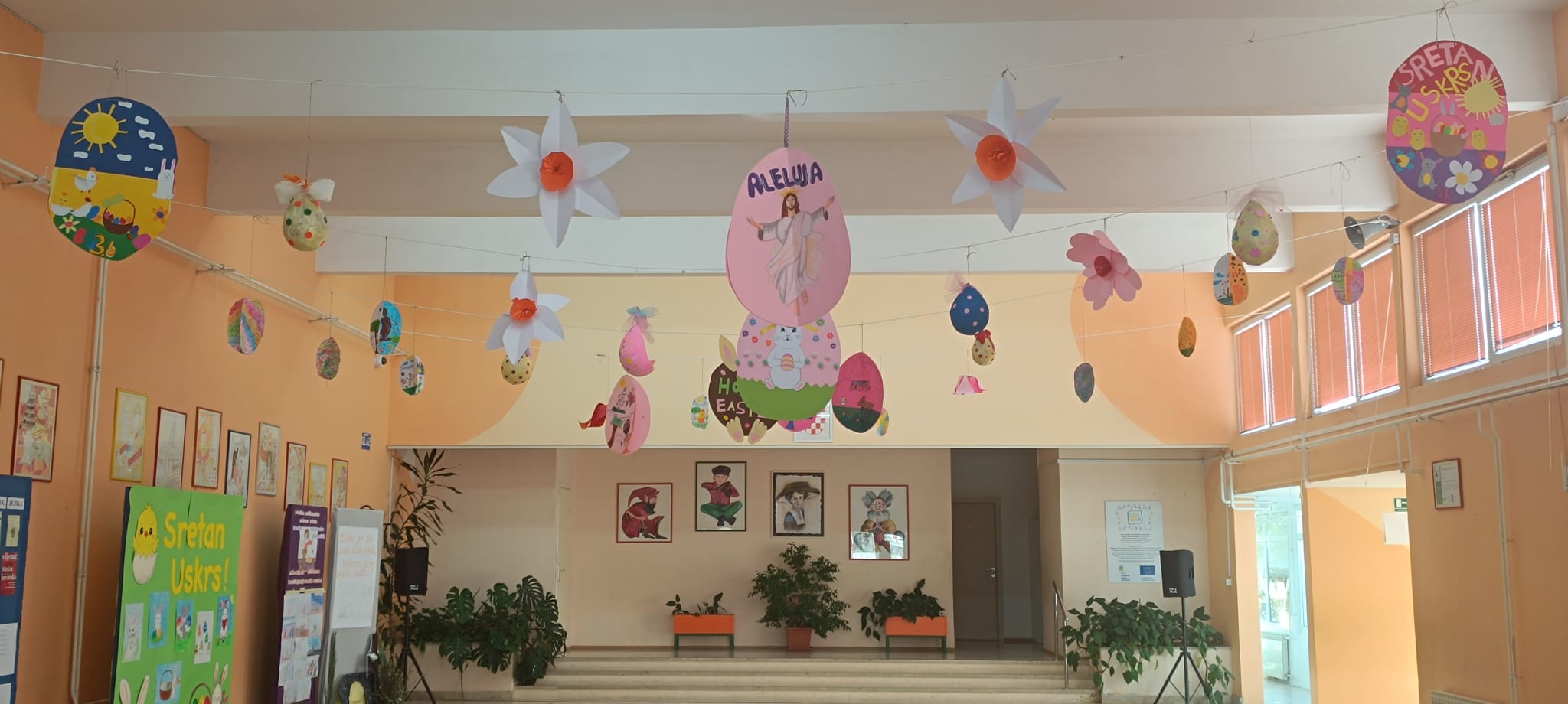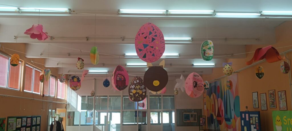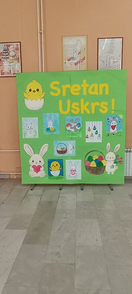 Od srca vam želimo obilje ljubavi, mira i radosti, ispunjene toplinom doma i zajedništva s najmilijima. Neka vam Uskrs donese blagoslov, novu snagu i vedrinu te unese boje u vaše dane – baš kao što su naš školski atrij uljepšali maštoviti i vrijedni radovi naših učenika.