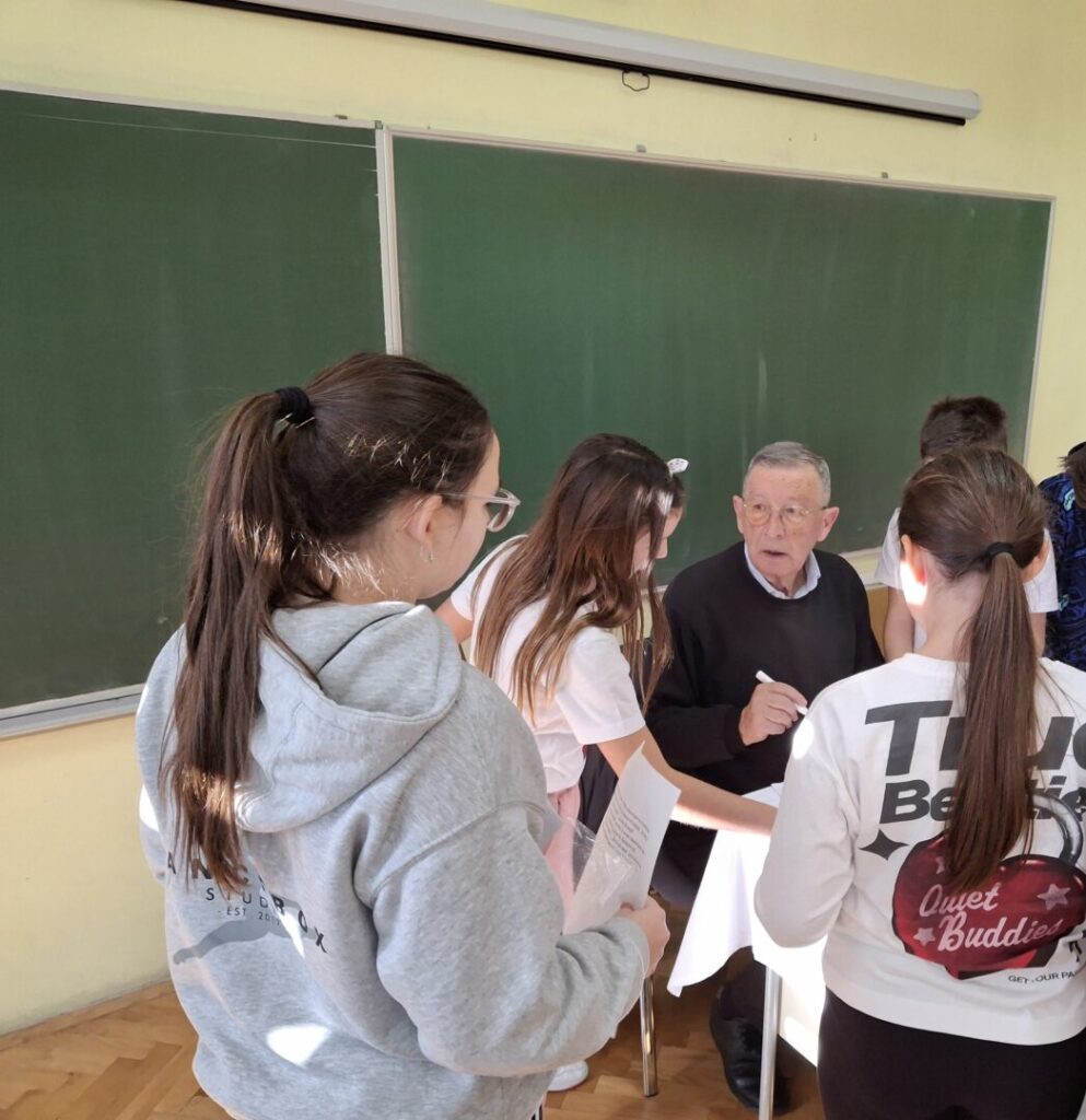 Pričao je o svom životu, kako je postao pisac i kako su nastale njegove knjige. Učenicima je posebno naglasio da je čitanje knjiga i učenje najvažnije kako bi postali ono što žele i napredovali u životu. Na kraju su ga učenici obasuli brojnim pitanjima, a najveći obožavatelji su dobili i autogram.
